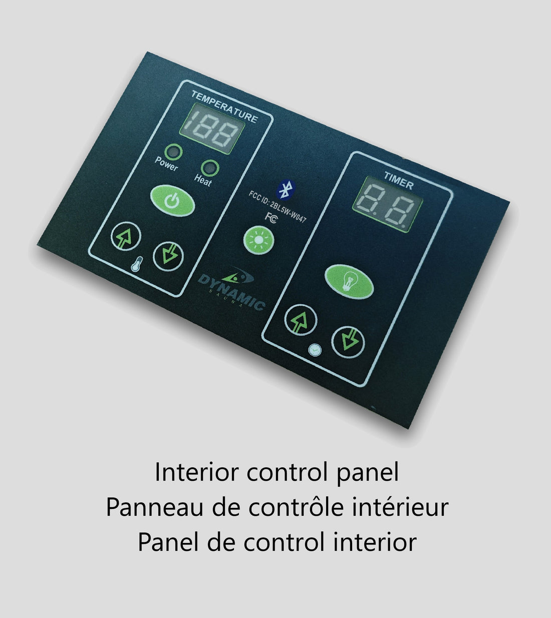 • Heating Elements: 7 Dynamic Ultra Low EMF (EMF between 3-5MG - 2 to 3 inches from the heating panels) FAR Infrared Carbon heating panels 2 on the rear wall 2 on each side wall, and 1 under the bench