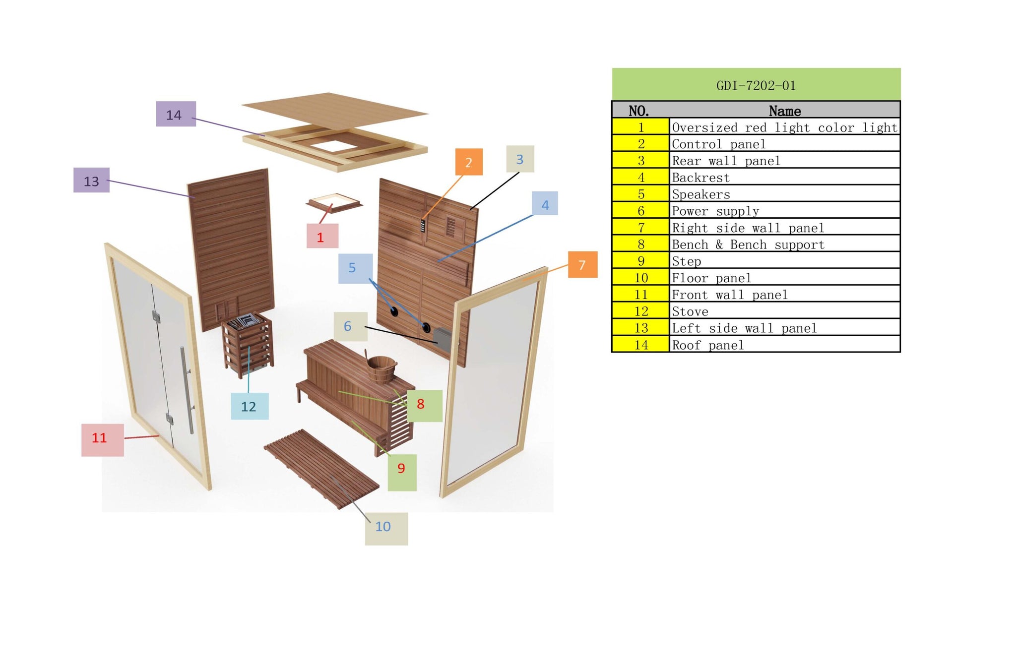 Golden Designs "Hanko Edition" 2 Person Indoor Traditional Sauna (GDI-7202-01) - Canadian Red Cedar Interior