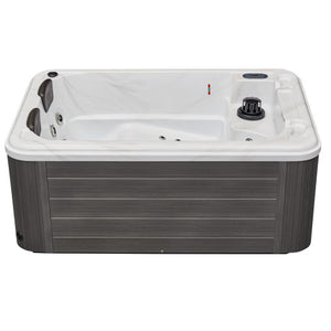 The Riley 3-person home spa with a cloud grey interior features two spacious lounge seats and 26 total jets packing a lot of power into a compact design. The Riley is designed to provide all the features of larger luxury spas in a smaller footprint. It is 31 inches deep and 77 inches long providing a deep soak with plenty of room to stretch out and relax.