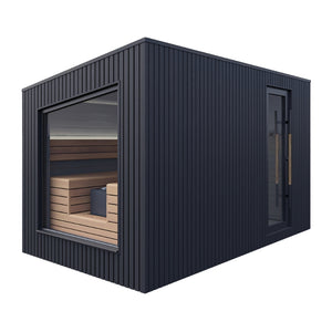 The Auroom Terra Outdoor Cabin Sauna is the ultimate in luxury outdoor saunas. This fully assembled sauna provides a lavish wellness space right in your backyard, offering style, comfort, and convenience without the hassle of assembly. Available in two sizes, you can choose the option that best fits your needs, whether it's a compact sauna space or a larger suite with a separate changing and relaxation area.