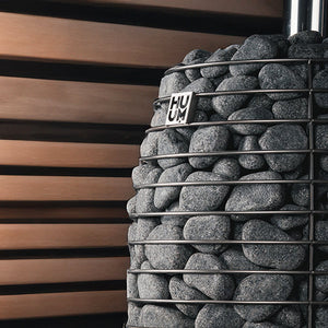 The HUUM HIVE Flow Mini LS Sauna Stove Package with a Firebox Extension comes complete with the HIVE Flow Mini LS Sauna Stove and Sauna Stones. Its innovative design ensures that 75% of the heat from the firewood directly heats your sauna rather than escaping through the chimney. It stands out as one of the most efficient and environmentally sustainable heaters for sauna rooms from 212 to 494 cubic feet (CF).