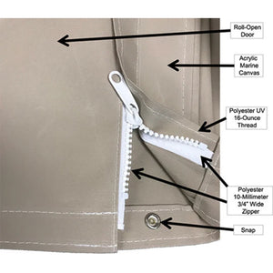 Protect your sauna against Mother Nature and help keep your investment safe. The Finnmark Waterproof Sauna Cover comes with a vertical roll-up door and has three ties to secure the door at the top. The weather slot allows you to run the power cord out the top of the rear panel on the left side.