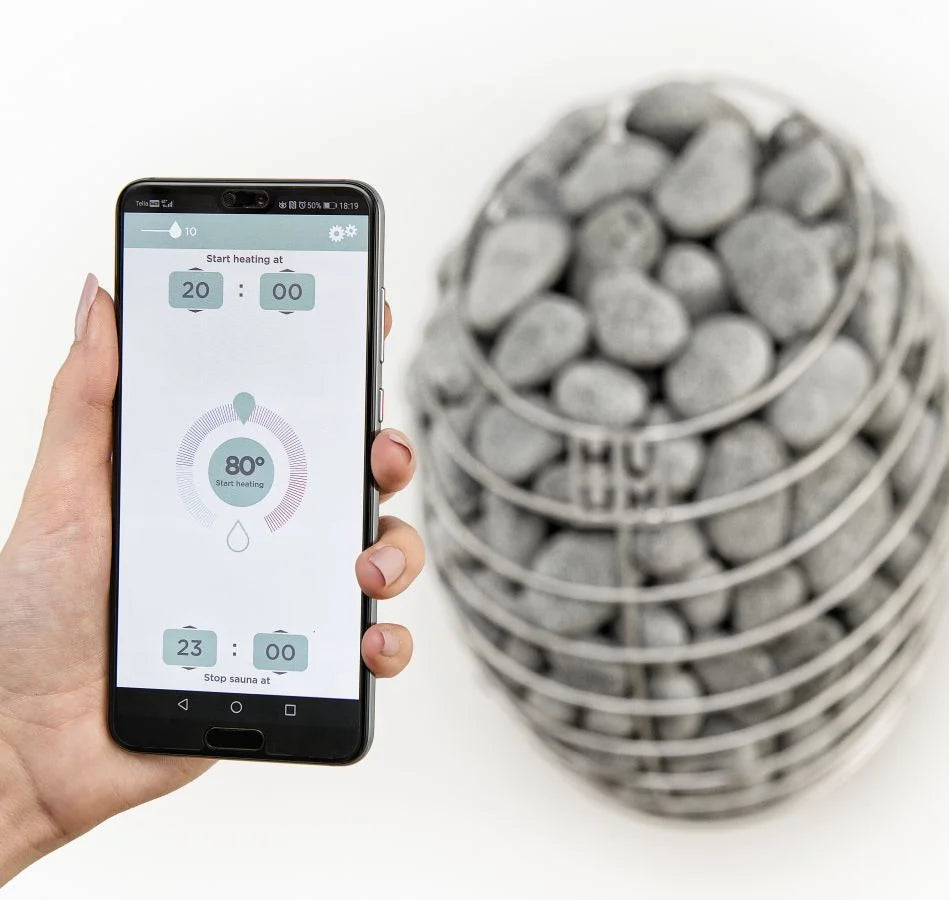 The HUUM STEEL Series 6.0kW Sauna Heater provides an exceptional sauna experience, with a sleek and compact design that adds elegance to any home sauna. Featuring smaller safety distances of just 2" (5 cm) for smaller models and 4" (10 cm) for larger models, this well-optimized heater is perfect for saunas with limited space. A 3.5 kW wall-mounted option is also available, making it ideal for smaller sauna rooms.