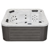 The Estes 5-Person home spa with a cloud grey interior features two lounge seating options and three spacious bucket seats. Includes 52 powerful massage jets providing back, leg, and foot massage for a complete hydra-therapy experience.  The multiple seating options of the Estes allow you to relax and enjoy the spa with friends and family without feeling crowded.