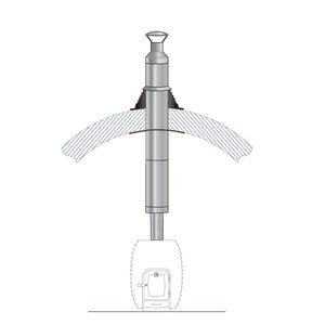 This barrel chimney set is designed to extend straight up through the ceiling and is designed for use with HUUM wood-fired sauna stoves inside Barrel saunas. The set includes a single-wall 0.25m pipe, a welded chimney base, a double-wall 0.5-meter chimney, a cover plate in two parts for the ceiling, double-wall straight pipe 1 meter, universal rubber roof flashing, a rain collar, and a chimney cap.